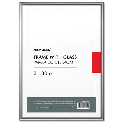 Рамка 21х30 см со стеклом, багет 14 мм пластик, BRAUBERG "HIT2", матовое серебро, 391318