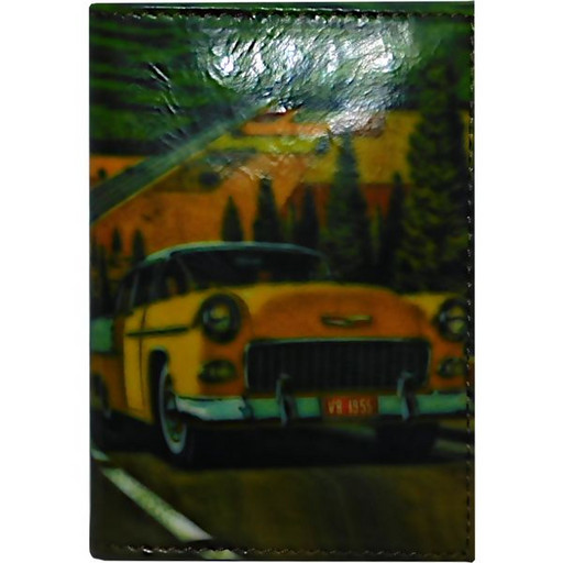 Визитница карманная Grand Желтое авто, на 40 визиток, нат. кожа, отстроч., печать принта