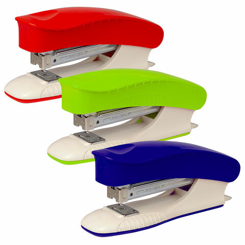 Способен скрепить до 30 листов. Стандартный размер скоб №24/6, 26/6. Глубина закладки бумаги - 45 мм. Виды сшивания: закрытый, прямой и открытый. Данная модель может выступать в качестве антистеплера, позволяющего разжать закрепленные скобы более качественно, не нанося повреждений ни материалу, ни кончикам пальцев. За счет компактных размеров не займет на рабочем столе много места. Имеет классический дизайн и выступает в синем, красном и зеленом цветах.